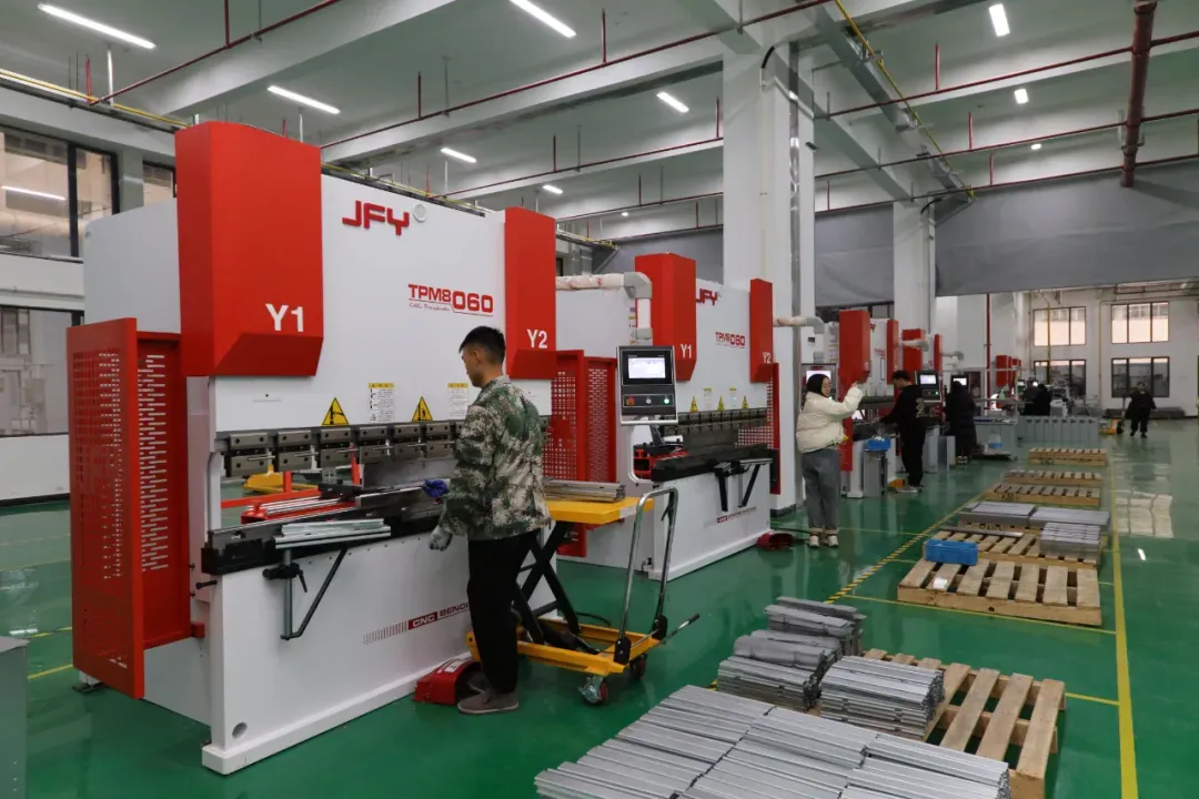 作为富博精密机械的“邻居”,浙江科能达智能装备有限公司同样聚焦新能源产业,公司主要生产光伏储能系统机壳机柜、太阳能支架、充电桩配件以及其他新能源配件。制造车间均采用了最新的现代化生产设备,聚力打造管理数字化、生产智能化、产品高质化的“未来工厂”。