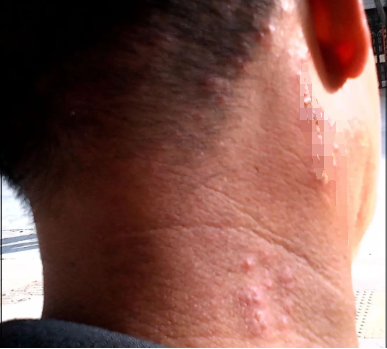 最近,萧山的刘先生很是烦恼,自己的右侧颈部莫名其妙出现一串串红色皮疹,上面还有绿豆大小水泡,痛痒难忍。