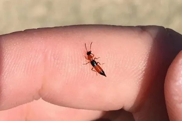 隐翅虫种类很多,长得也各有不同,并不是所有的隐翅虫都有毒,但看到黑红相间的,基本上可以判断它是有毒的种类。
