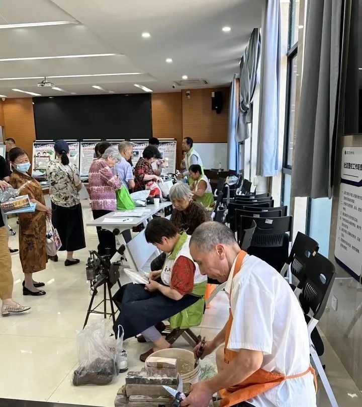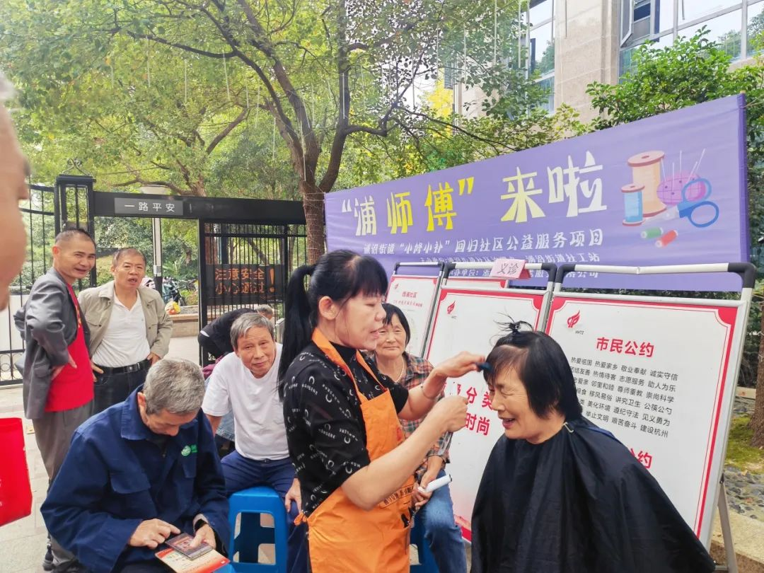 2023年10月,滨江区浦沿街道召集了一批经验丰富的老师傅们,成立了小修小补团队,每月走进26个社区,开展一场公益活动,为老人们免费提供磨刀、理发、缝补、修鞋、小家电维修等服务,推拿、电路检修、测血糖血压等服务也会不定期上线。