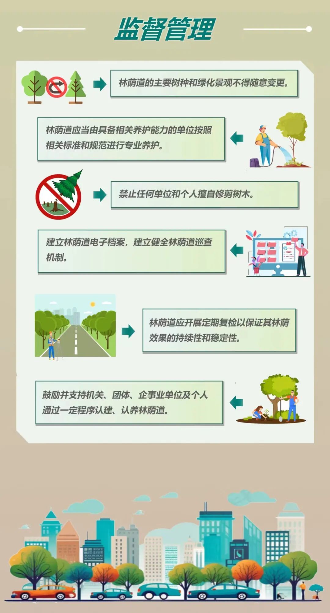 2021年。编制完成了《杭州市林荫道系统专项规划》,提出以“联绿通蓝,织路成网”的结构,力求在未来十余年形成具有500多条规模的林荫道规划设计;2022年,伴随城市新建道路和地铁工程复绿,全年种植了约3万株行道树,为培育新的林荫道打下基础;2023年,发布了《杭州市林荫道设计导则》,城市林荫道的建设有了规范指导。目前,杭州约有行道树57万余株,串联起了城市东南西北、通江达湖绿色大网,让推窗见绿、开门见景、出门入园逐渐成为杭州市民生活的新常态。
