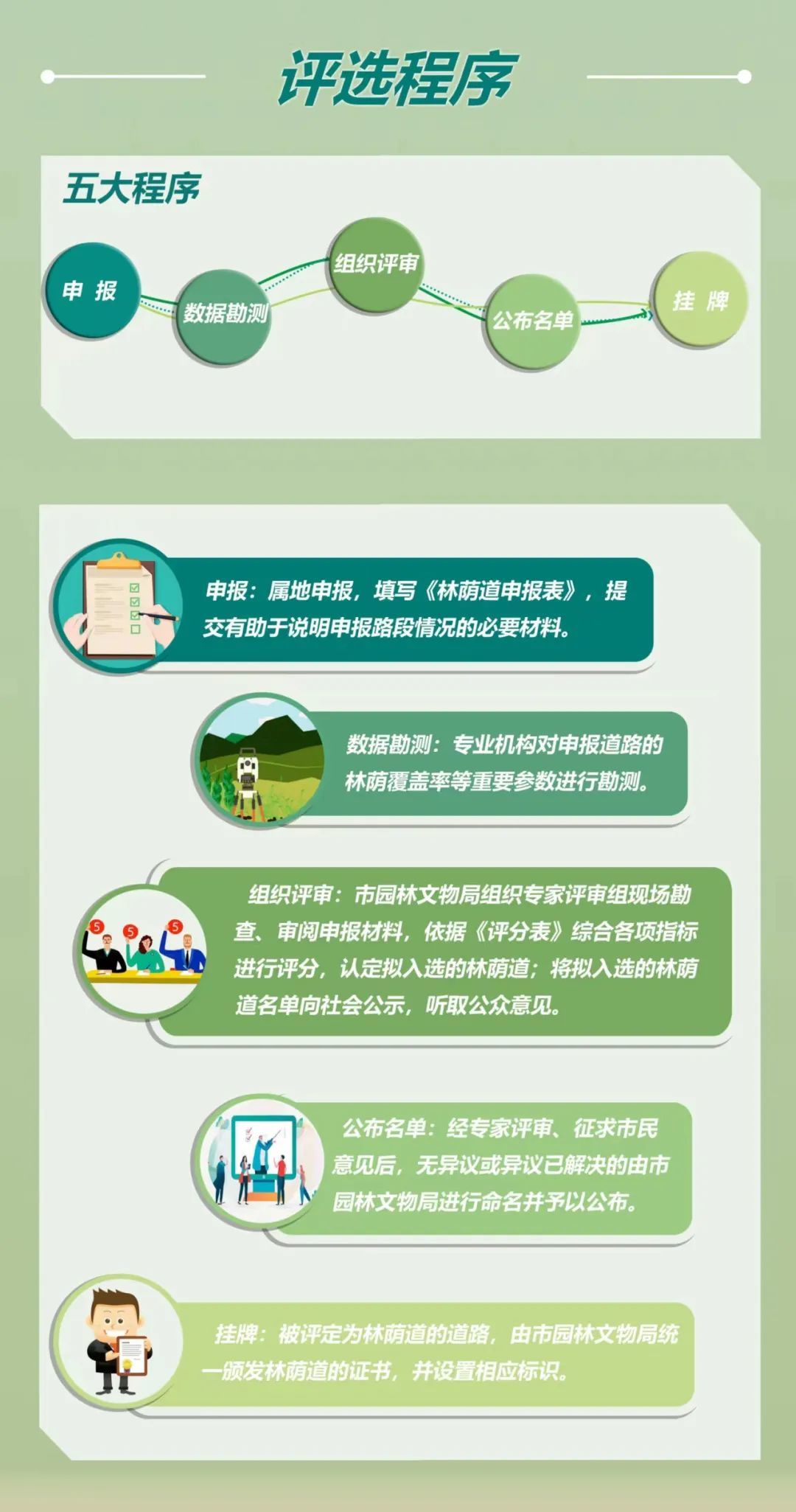 这份评选标准和管理导则,它已在全市各城区绿化管理部门、西湖景区中完成意见征集和修改,并吸收了市建委、市城管局、市交通局、市规资局、市公安局等相关部门、园林和城市管理专家的意见。它,或许能给这座城和城里的市民群众带来更多密密的绿网、更多长长的绿道和更多美美的绿荫。