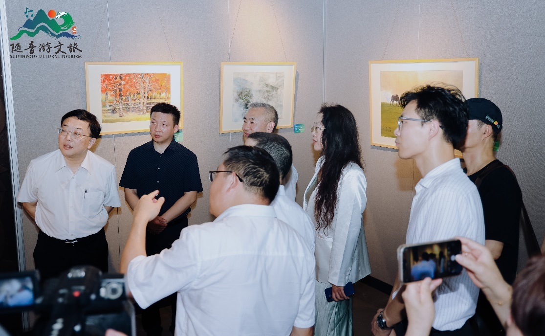 活动尾声部分,嘉宾在馆内自由观展,此次画展汇聚了近四十位来自杭州与台湾的中青年水彩画精英的杰作,通过造访湘湖之滨和西子湖畔,实地写生创作,参访有“天下第一名社”美称的西泠印社和珍藏“富春山居图”的浙江博物馆等,与祖国壮美山河对话,携手并行,共同表达对艺术文化的热爱和追求。