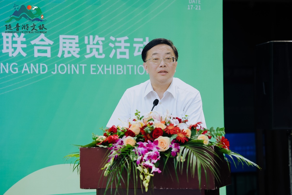 省政协副秘书长、致公党浙江省委会专职副主委金爱武,杭州市台协会会长黄鼎传,台湾国际洪门中华总会理事长郑光礼,浙江随音游文旅有限公司董事长林启民出席并致辞。致辞结束后,推进作品展启动仪式,并邀请嘉宾移步至特设的合影区进行合影。