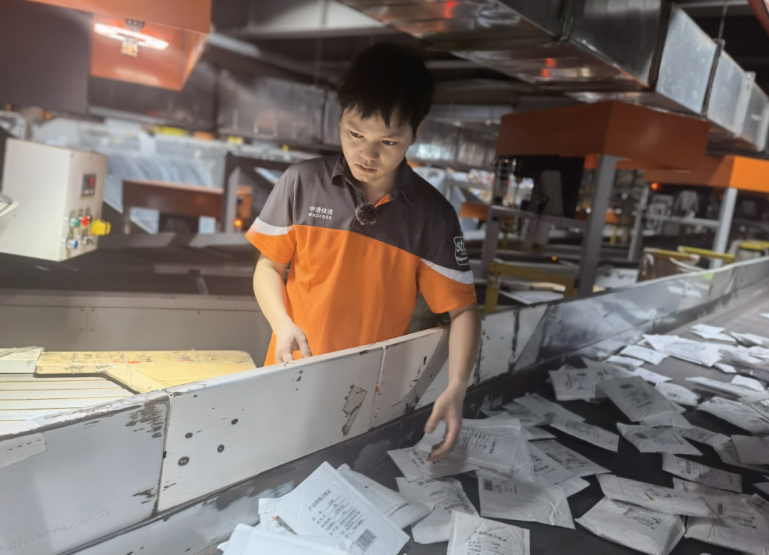 站在快递转运中心的机器台前,他一边扫视着屏幕上的信息,一边观察着流水线上不断吞吐的快递,手脚麻利地挑出包装不规则的小件,动作熟练丝滑。
