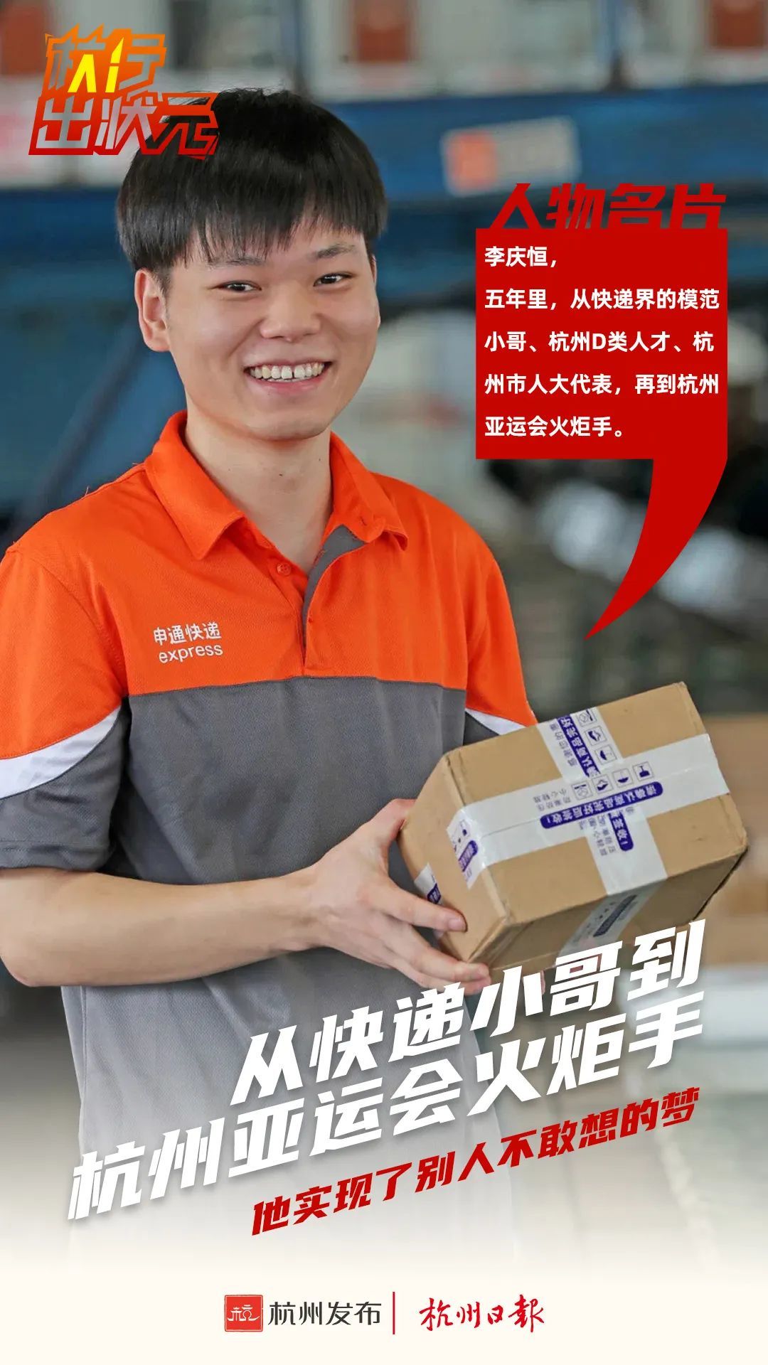 一举夺魁后,李庆恒成了快递界的一名模范小哥。2022年,他当选为杭州市第十四届人大代表,为快递行业建言献策。2023年,他又成为杭州亚运会火炬手,在北山街传递第81棒亚运圣火。