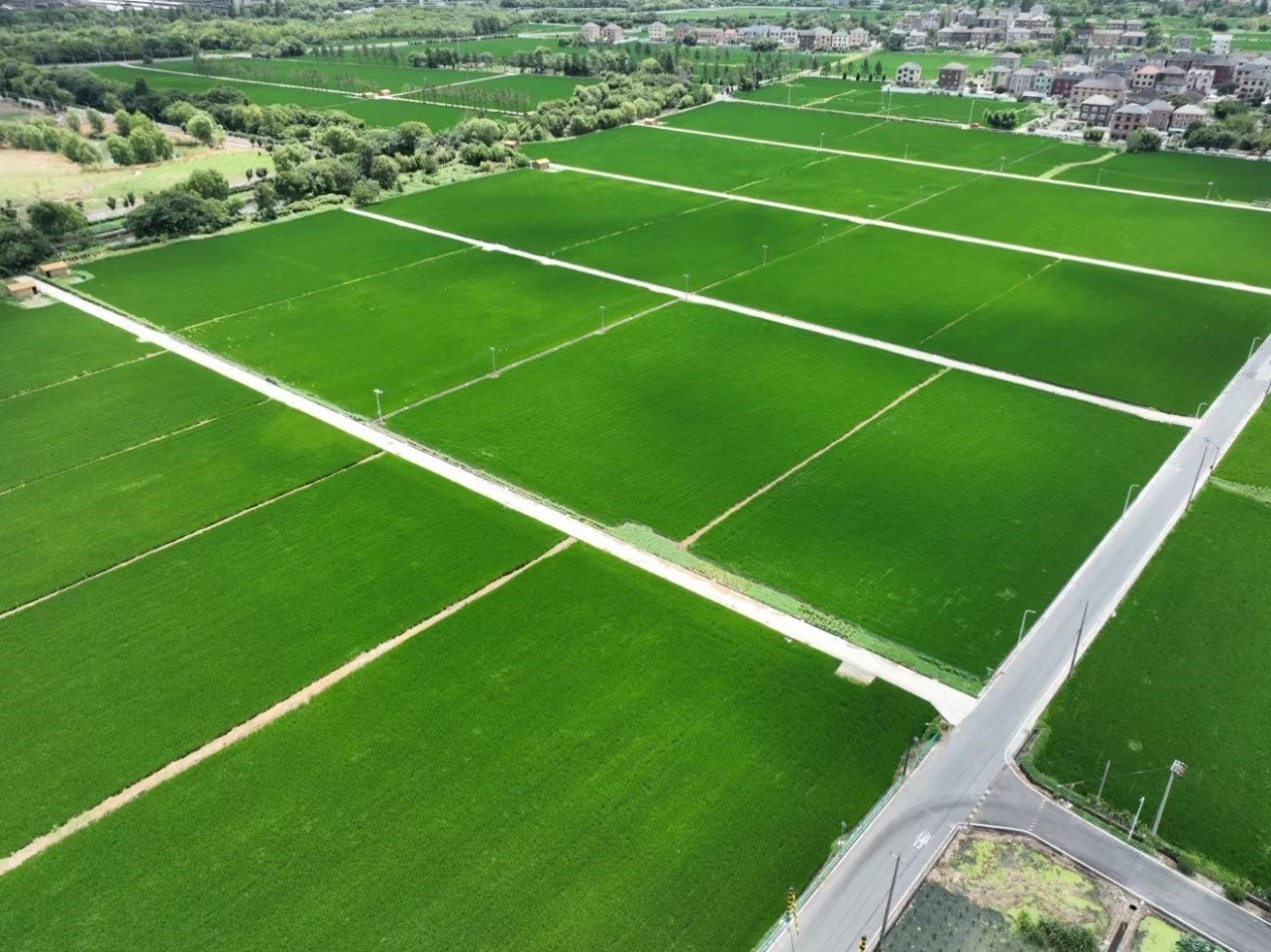 放眼望去,项目区“田成方、路成框、渠成网”,集中连片的浓厚绿意与田埂旁的青瓦白墙相应和,是一幅理想中的现代乡村画卷。