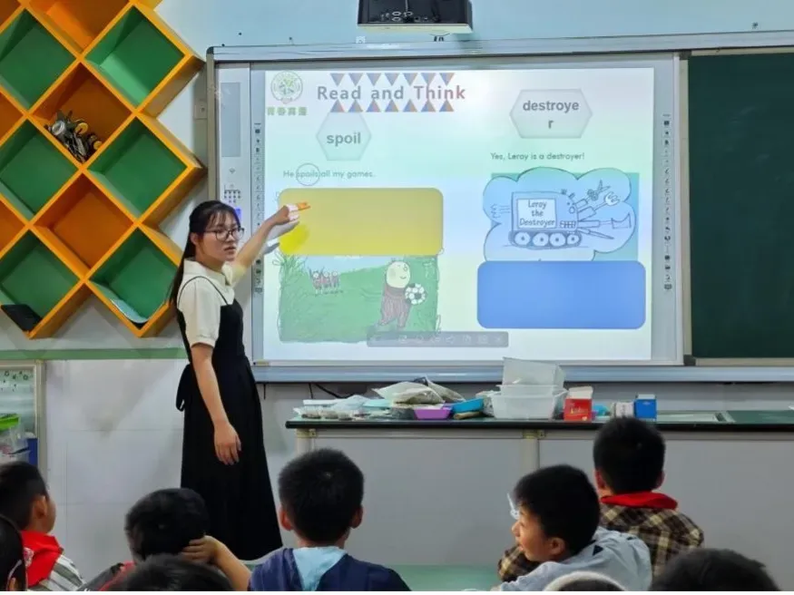 当我与孩子们分享我的杭州亚运会志愿者经历时,他们感受到了英语学习的重要性,也学习到了许多课外的英语文化知识。当我们在准备最后的演出时,一次一次地改稿,一遍一遍地练习,哪怕台词里有一些比较长的句子,孩子们也依旧充满了热情,让我不得不为他们点赞。正是因为这一次的绘本演出,“用英语讲中国故事”变得更加具象化,“趣味学英语”变得更幸福化。