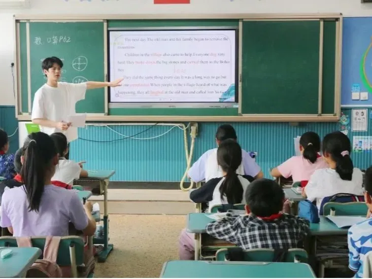 北海小学的新河弄校区和镜湖校区里,周洁、许思倩、徐佳彬、和吴杭鑫等同学的英语绘本社团课妙趣横生展现了独特的教学才能。他们精心准备了题材多样的绘本教学内容,既有经典故事《愚公移山》,也有小学生时下喜爱的小猪佩奇等流行元素,实现了教学内容的多元化与个性化,让小朋友们都能寻得兴趣所在,从而爱上英语绘本的世界。
