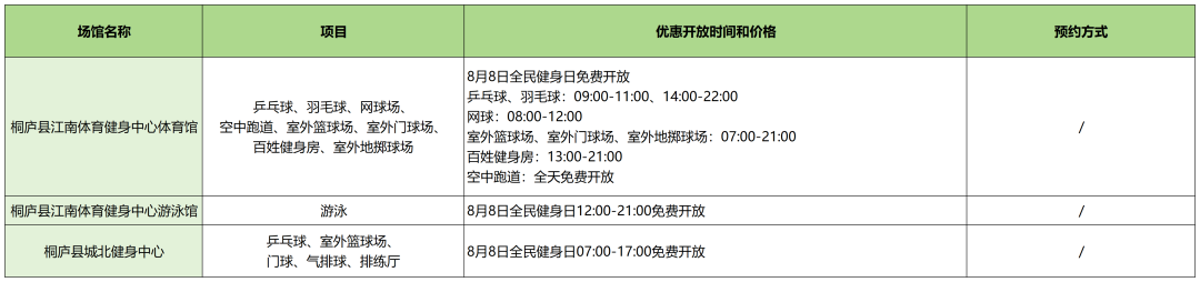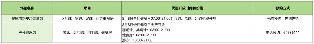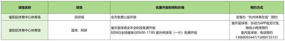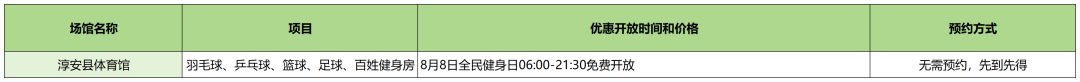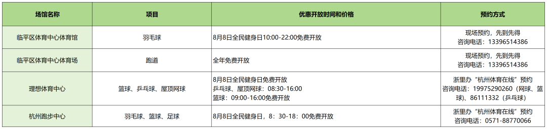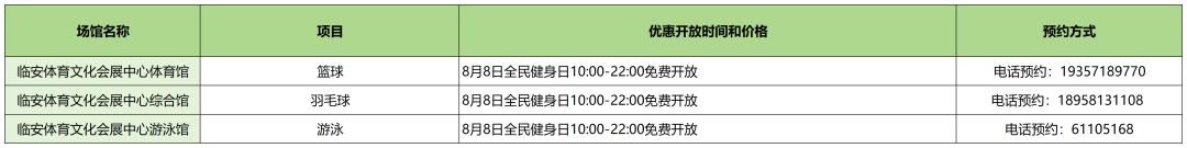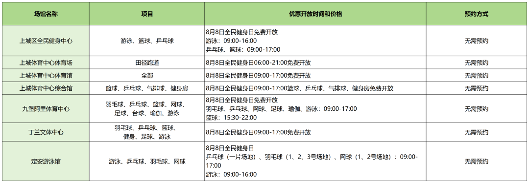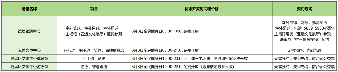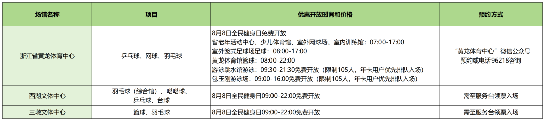 今年8月8日,台州市体育中心特别推出了以下免费活动: