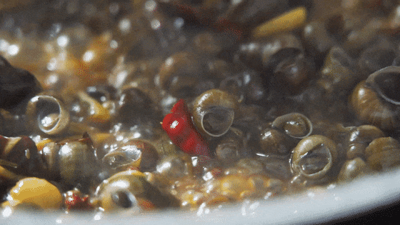 作为楠溪江当地特有的野味,溪螺个个体型肥硕,口感弹牙,以葱、姜、蒜、料酒为主爆炒,迸发出食物最本真的味道。
