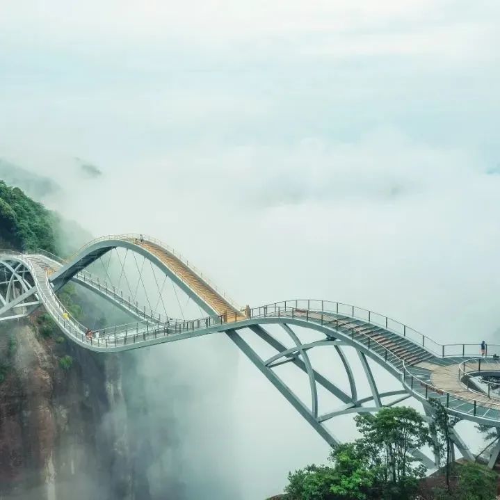 神仙居位于台州市仙居县白塔镇,被誉为江南第一名山,山势险峻,风景如画。由鸟巢设计师亲手打造的如意桥,横空凌驾在百米峡谷之间,全透明的玻璃栈道设计,让人置身在云端如梦如幻。