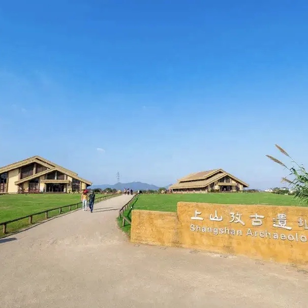 走入位于浦江县黄宅镇渠南村的上山遗址,映入眼帘的是一座外形保持原始村落建筑结构的上山遗址博物馆。2000年遗址首次被发现,经多次考古发掘出土了距今万年的稻作遗存,且已具备水稻收割、加工、食用的完整证据链。