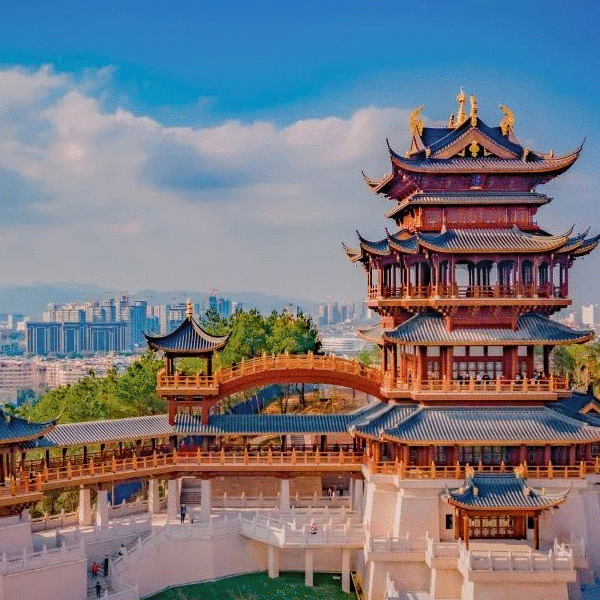 鸡鸣阁是位于义乌鸡鸣山公园的一个标志性景观建筑,也是电视剧《梦华录》的取景地之一。白天逛完国际商贸城,品尝了国际美食,晚间不妨前往鸡鸣阁登高赏夜景。
