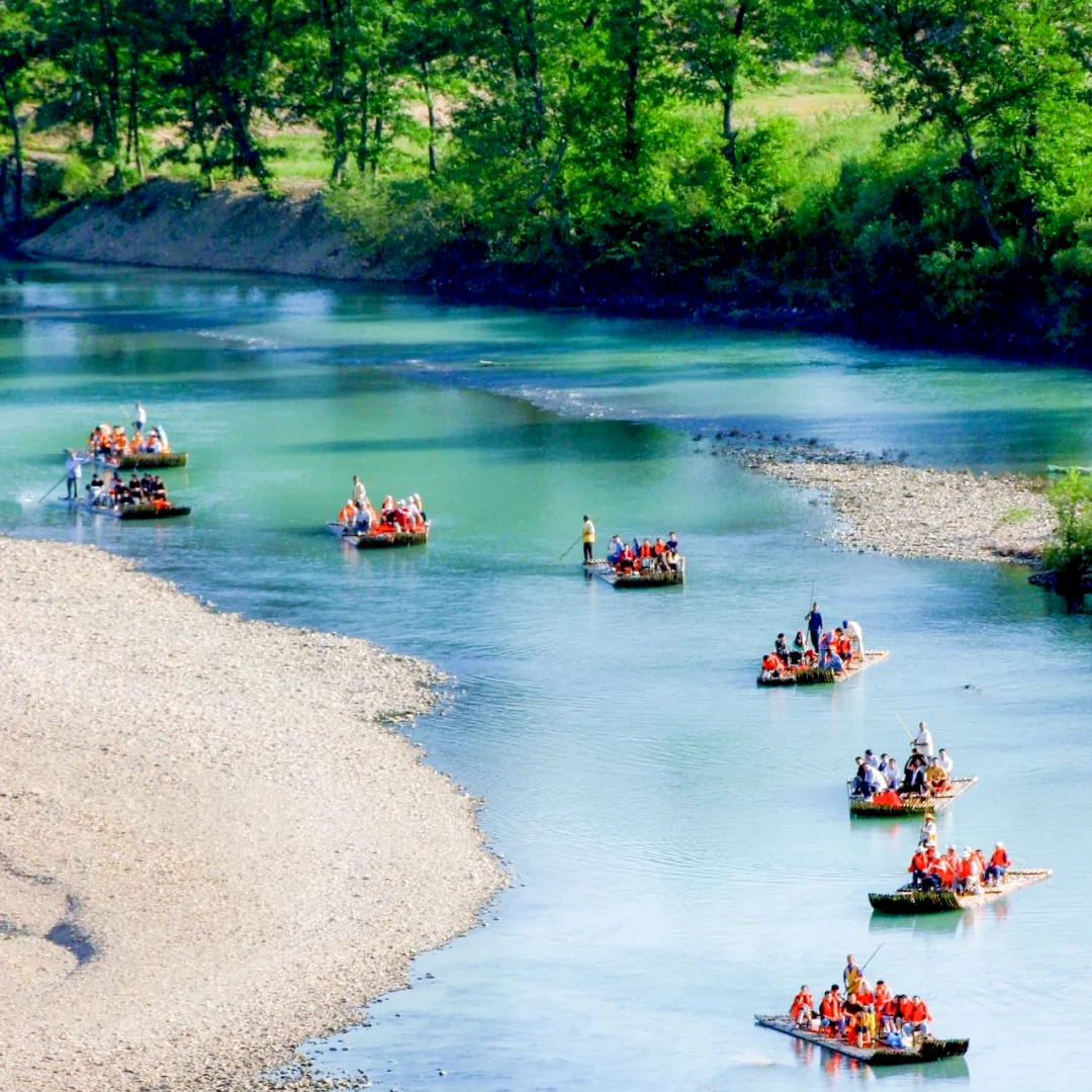 仙居永安溪漂流极具特色,以原生态竹筏为工具,让人既能体验到漂流的乐趣,又能欣赏沿途诗意盎然的山河美景。