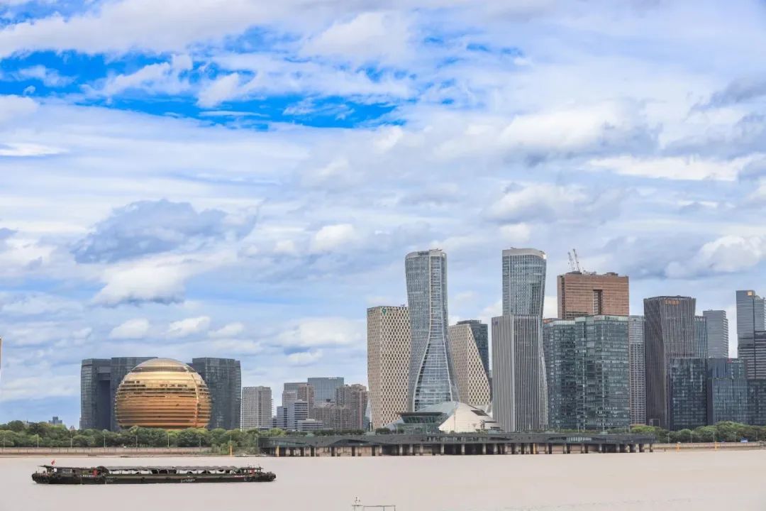 每当天气晴好,很多杭州市民喜欢去钱塘江边散步、锻炼。