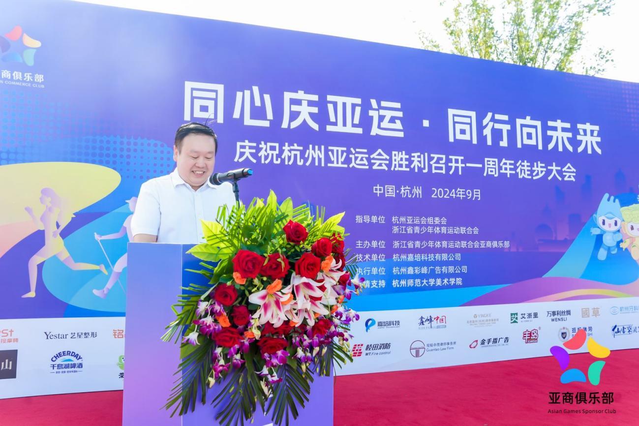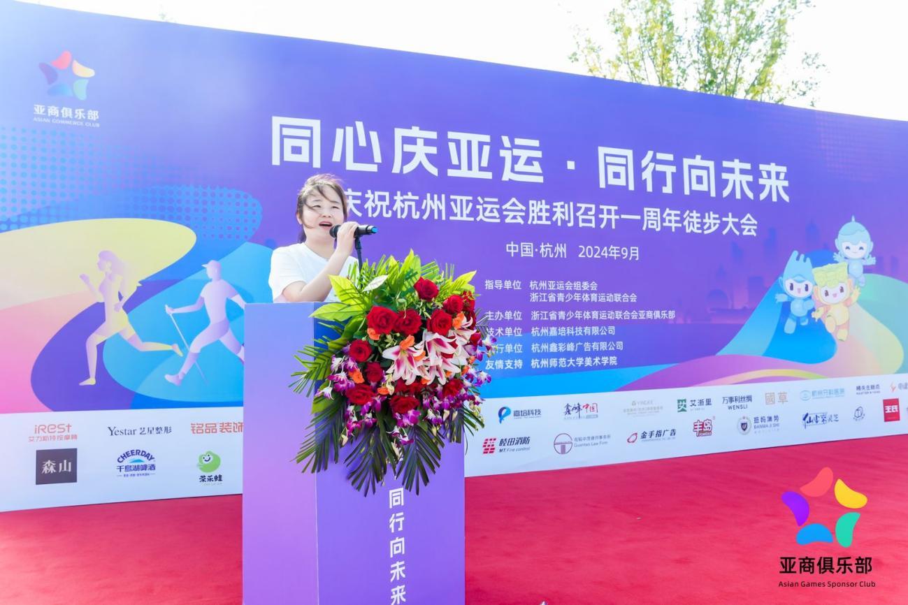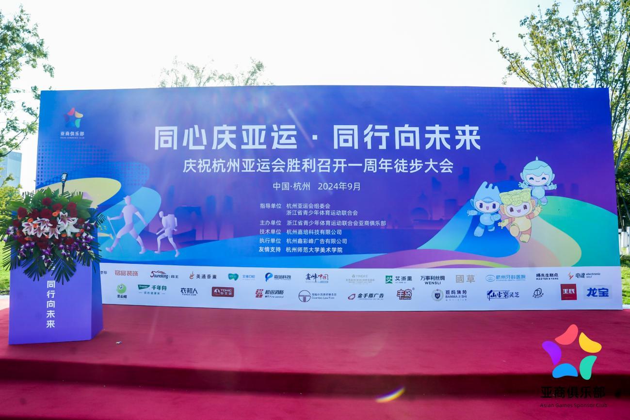 为庆祝杭州亚运会举办一周年之际,9月22日,浙江省青少年体育运动联合会携手亚商俱乐部,在亚运主场馆奥体中心旁举办庆祝杭州亚运会成功举办一周年的徒步大会。