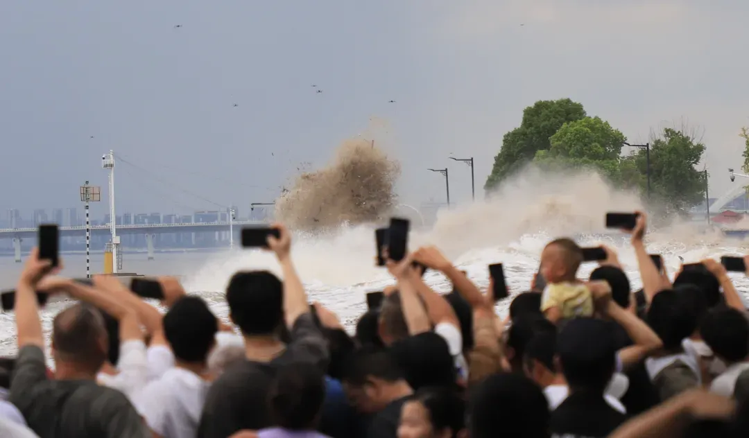 恰逢钱塘江观潮最佳时节,海阔天空浪若雷,大潮奔涌向前,澎湃奋进之声。