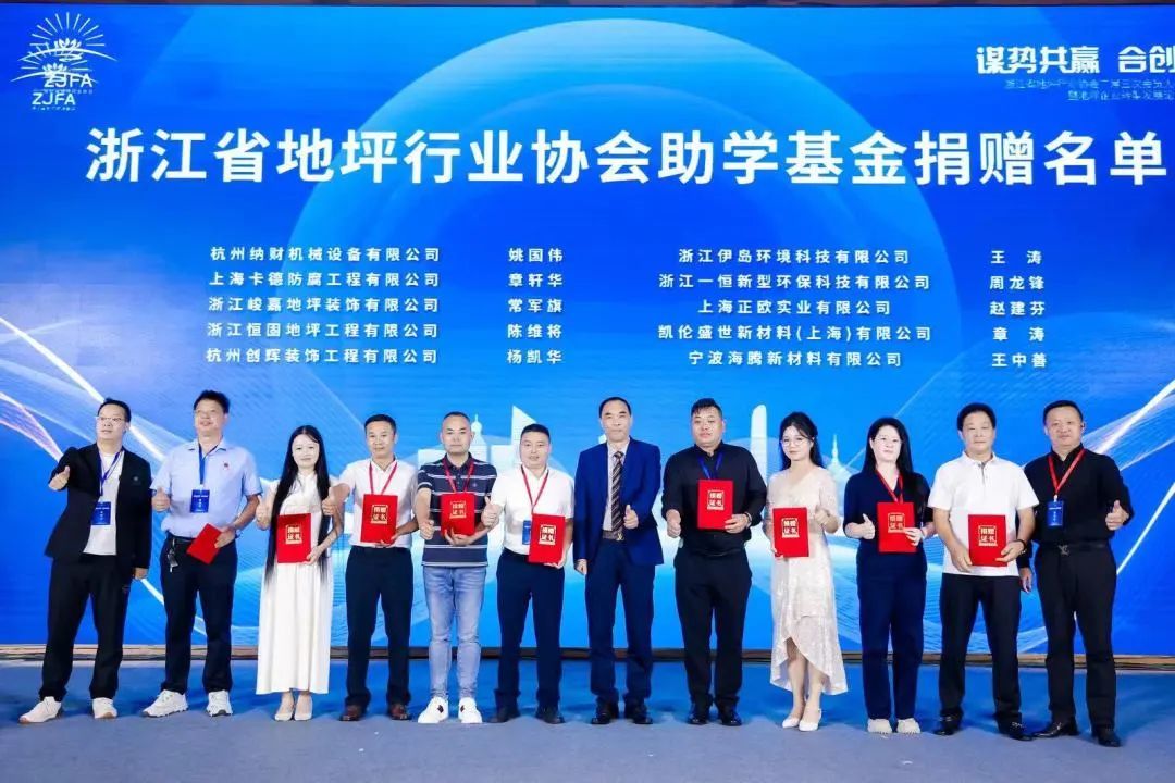 6月,浙江省地坪行业协会秉承着“发挥协会力量,致力公益慈善”的宗旨,和浙江建设职业技术学院合作成立“浙江省地坪行业协会助学基金”项目,每年为在校的贫困地区困难家庭的学生提供资助,用以帮助这些学生完成他们的学业。在大会上,为慷慨捐赠的个人和企业颁发了捐赠证书。