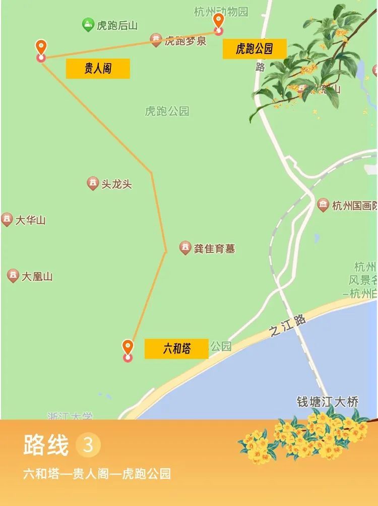 📍路线3: 六和塔—贵人阁—虎跑公园