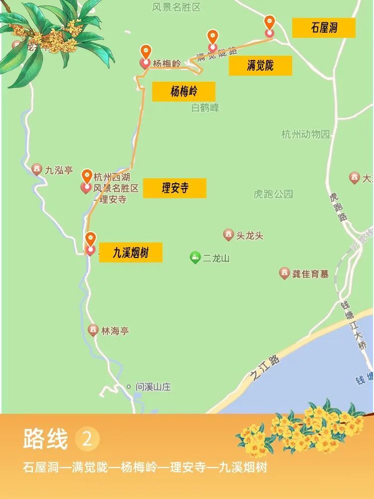 📍路线2: 石屋洞—满觉陇—杨梅岭—理安寺—九溪烟树