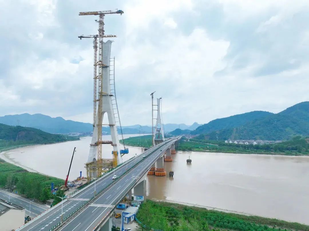 近日,甬台温改扩建台州北段项目控制性工程——灵江特大桥实现双主塔封顶,标志着大桥全面转入上部结构施工阶段,距离通车再进一步。