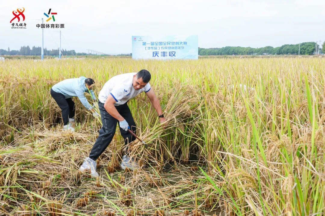 活动共持续了两天。除了“浙里乡村健康跑”,在后续的庆丰收(割稻)项目中,选手们手持镰刀,在金黄的稻田间挥汗如雨,争夺“丰收之王”的荣誉;拔河比赛则考验着团队的协作与力量,呐喊声、加油声此起彼伏;旱地龙舟比赛更是别具一格,选手们脚踏龙舟,在田间地头划出一道道亮丽的风景线;滚蚕匾、举稻草等项目则充分展示了农民们的力量与技巧。大家融入自然乡野,在趣味竞赛中体悟劳动艰辛、收获运动快乐。最终,山东代表团以优异成绩拔得头筹。赛后选手们还获得了临平本地原汁原味的农副土特产作为奖励。