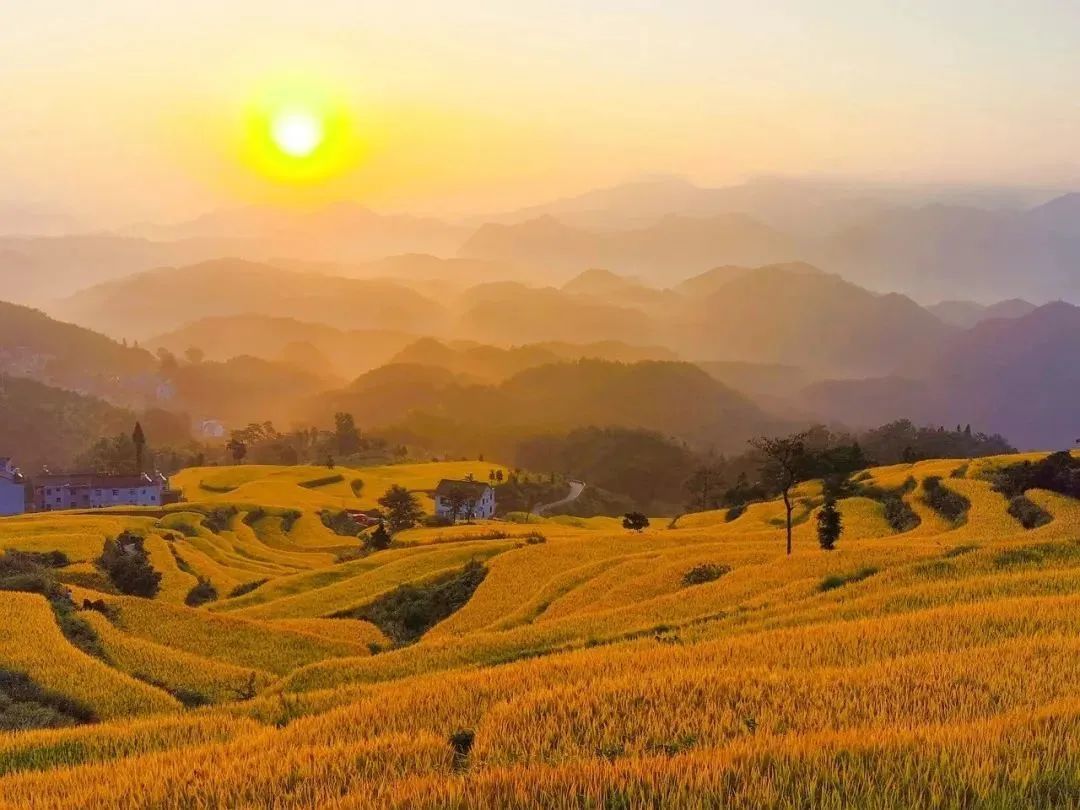 你若爱山景,便可去一去浙西浙南。比如,在台州天台的泳溪乡,层层叠叠的梯田弯曲延伸,金黄的稻田一直从山脚连绵到山顶,在夕阳的映衬下流光溢彩。因此,天台的梯田又称“鎏金梯田”。前不久,“泳溪北山鎏金梯田”还登上热搜榜,网友们惊叹,“已经美成next level了”。