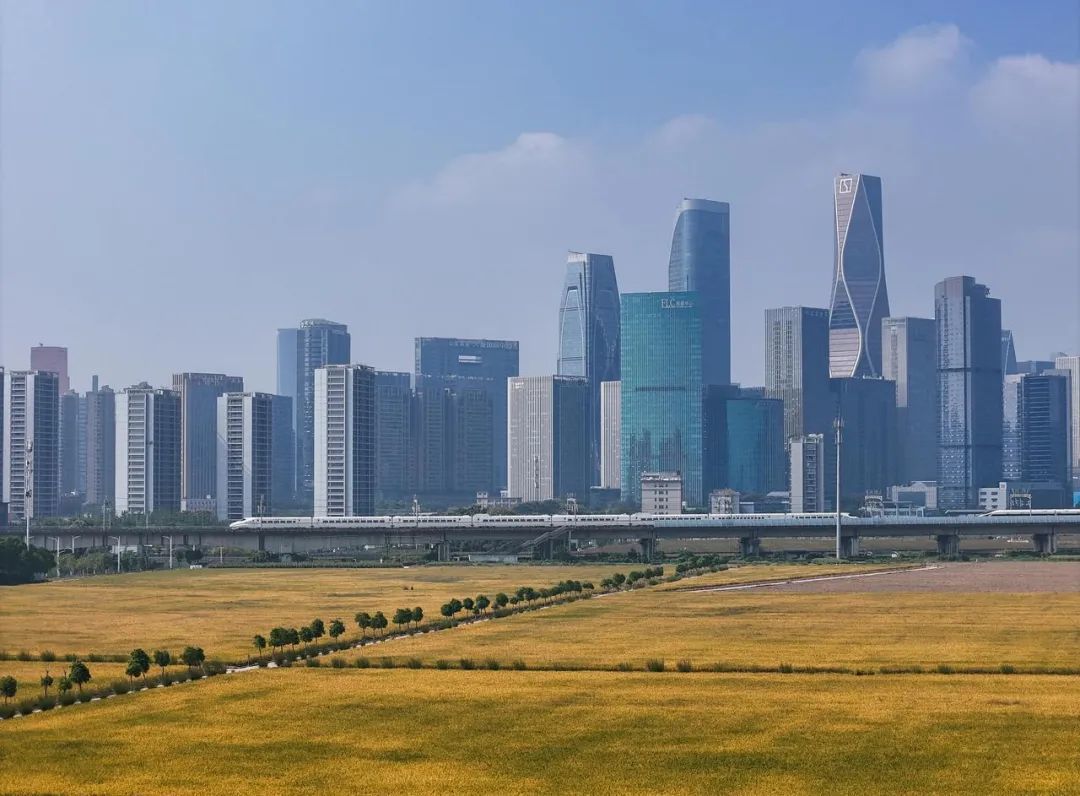 钱江世纪城,高铁从城市CBD和金色稻田间飞驰而过 图源:潮新闻客户端