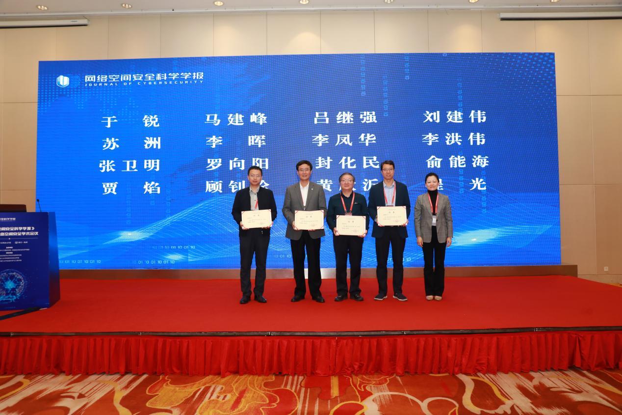 为促进学报高质量发展,表彰一年来对学报做出重要贡献的编委、审稿人和作者,编辑部特制定了评优管理办法,并评选出优秀编委、优秀审稿人和优秀论文。中国航天系统科学与工程研究院副院长、学报常务副主编李佳,桂林电子科技大学教授、学报编委丁勇,河北大学网络空间安全与计算机学院院长、学报青年编委杜瑞忠分别为优秀编委、优秀审稿人和优秀论文代表颁奖。