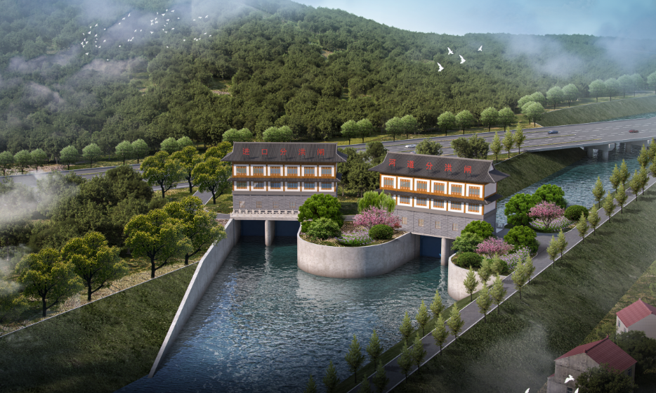 北渠分洪隧洞工程: 起点位于恩波大道与北渠交叉口上游约160米处,隧洞出口通过埋地箱涵经穿越江滨东大道后接入富春江,长7.6公里,隧洞进出口分别设置隧洞进口分洪闸、河道分洪闸和出口排水闸;