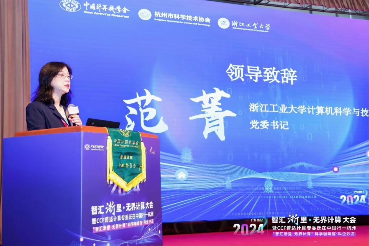 浙江工业大学计算机科学与技术学院党委书记范菁对本次会议的召开表示热烈祝贺,并强调了人工智能、物联网和智能计算等技术在推动经济社会发展中的重要作用。