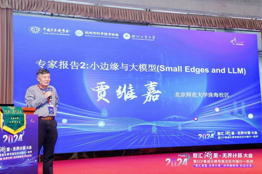 北京师范大学珠海校区的贾维嘉教授作了题为“小边缘与大模型(Small Edges and LLM)”的报告,探讨了边缘计算与大模型协同工作的机遇与挑战。并用螺蛳壳里做道场来比喻边缘设备里进行的LLM工作。