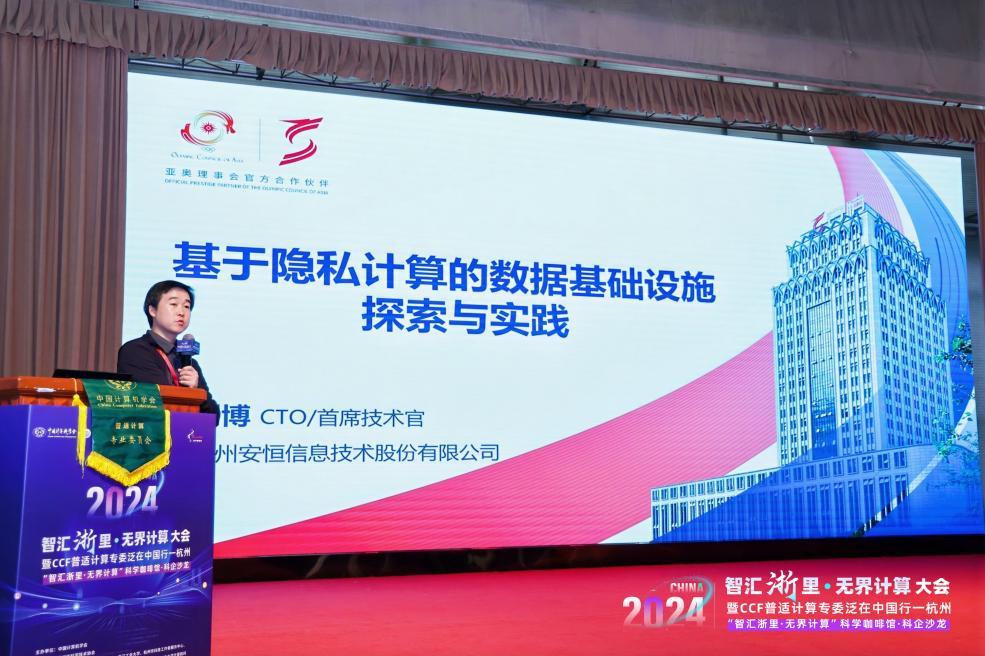 安恒信息CTO刘博做了题为“基于隐私计算的数据基础设施探索与实践”的报告,分享了安恒信息在数据要素安全流通领域的创新实践,特别是“数由空间”数据基础设施解决方案的提出和应用,以及如何通过隐私计算技术确保数据在流通过程中的安全性和合规性。