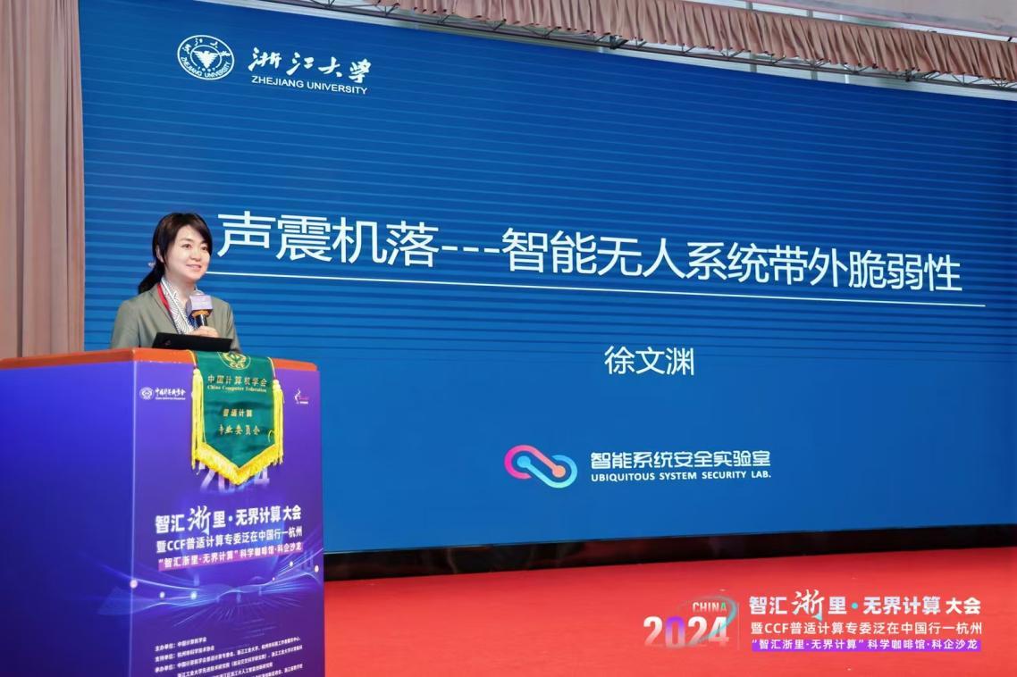 浙江大学徐文渊教授作了题为“声震机落——智能无人系统带外脆弱性”的报告,为无人系统的安全防护提供了新的思路和方法。