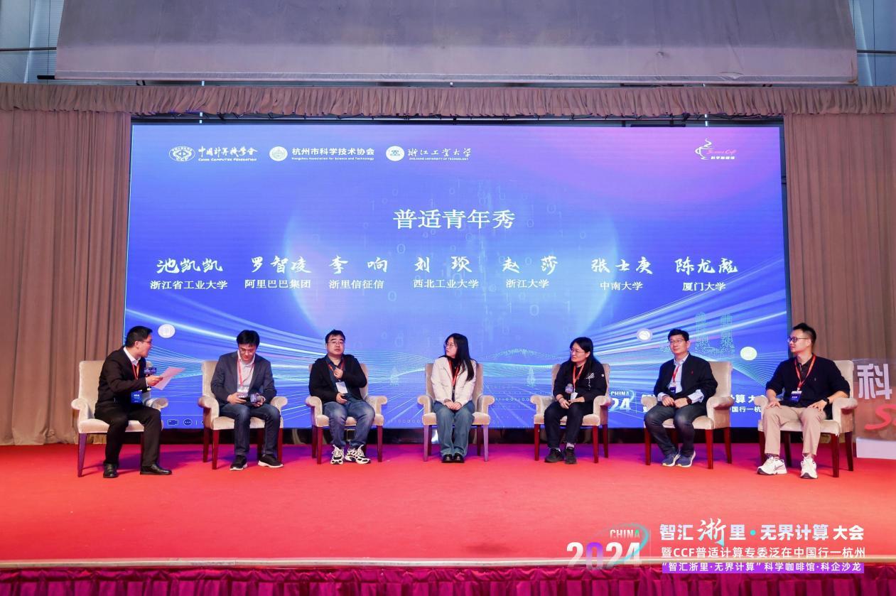 在“普适青年秀”讨论环节,来自阿里巴巴罗智凌、浙里信征信李响与来自中南大学张士庚、厦门大学陈龙彪、西北工业大学刘琰、浙江大学赵莎等专家学者就人工智能与普适计算领域的最新研究成果和创新应用展开讨论,为大会增添了新的活力。