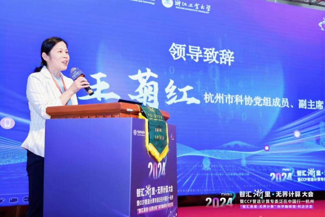 杭州市科协党组成员、副主席王菊红出席会议并致辞,她表达对参会者的热烈欢迎,充分肯定会议对于人工智能、物联网和智能计算等技术发展的推动作用。