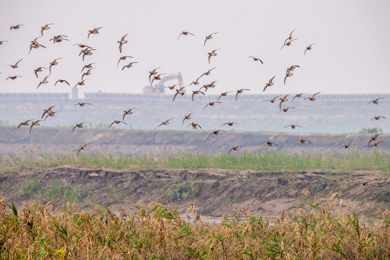 浙江绍兴,迁徙候鸟在海途湿地栖息觅食。图源视觉中国