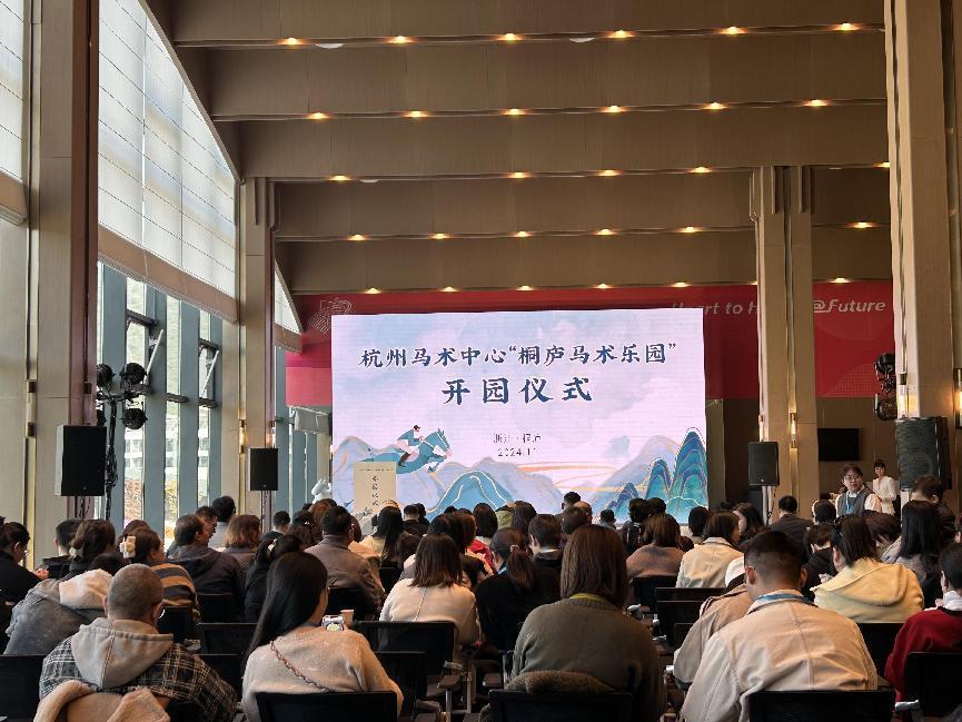 开园仪式上,发布了亚运马术场馆赛后利用专题片《打响“桐庐马术”品牌 续写亚运马术辉煌》,4家首批进驻企业负责人分别围绕项目运营进行专题推介并举行揭牌仪式。杭州马术中心作为亚运赛后利用主阵地和桐庐马产业引育发展主平台,培育打造“桐庐马术乐园”以及招引落地4家首批进驻企业,正是对“马术+文旅”“马术+赛事”“马术+教培”“马术+产业”“马术+城市”的系统集成、融合发展。