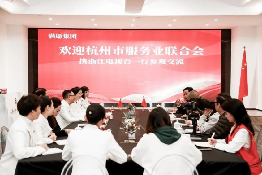 走名企,学标杆!12月3日下午,杭州市服务业联合会走进名企”第三站-副会长单位满愿集团参观交流。受到集团董事长陈亦宁,杭州协和研究院副院长吴辉等负责人的热情接待!浙江铁道发展集团原党委书记、董事长楼望淦,臻爱臻灸(浙江)健康管理有限公司等企业代表受邀参加活动。
