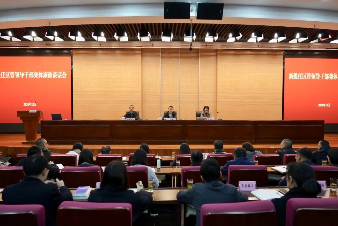 为深入贯彻落实党的二十届三中全会精神,把经常性教育和集中性教育结合起来,不断加强对领导干部尤其是新任领导干部的教育监督管理,12月6日上午,临平区开展新提任区管领导干部集体廉政谈话,引导新提任区管领导干部时刻保持清醒头脑,将廉洁自律内化于心、外化于行,扣好廉洁从政的“第一粒扣子”,为高水平建设“数智临平·品质城区”提供坚强保障。区委常委、区纪委书记、区监委主任叶敏琦出席并作廉政谈话。