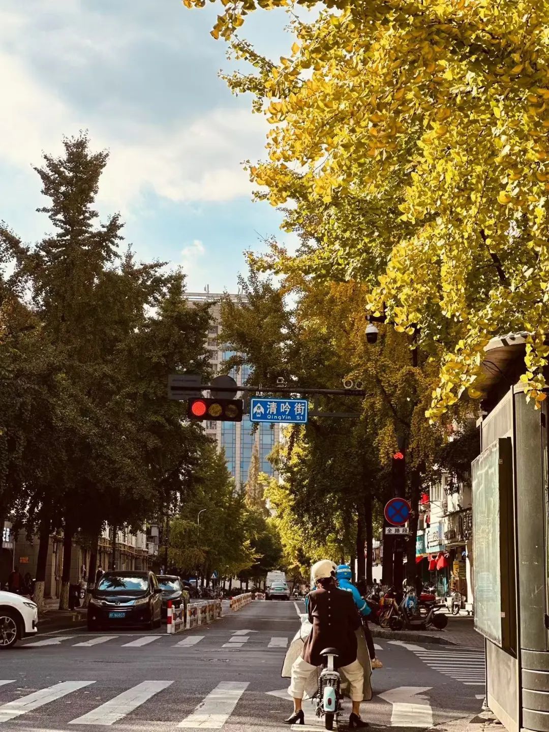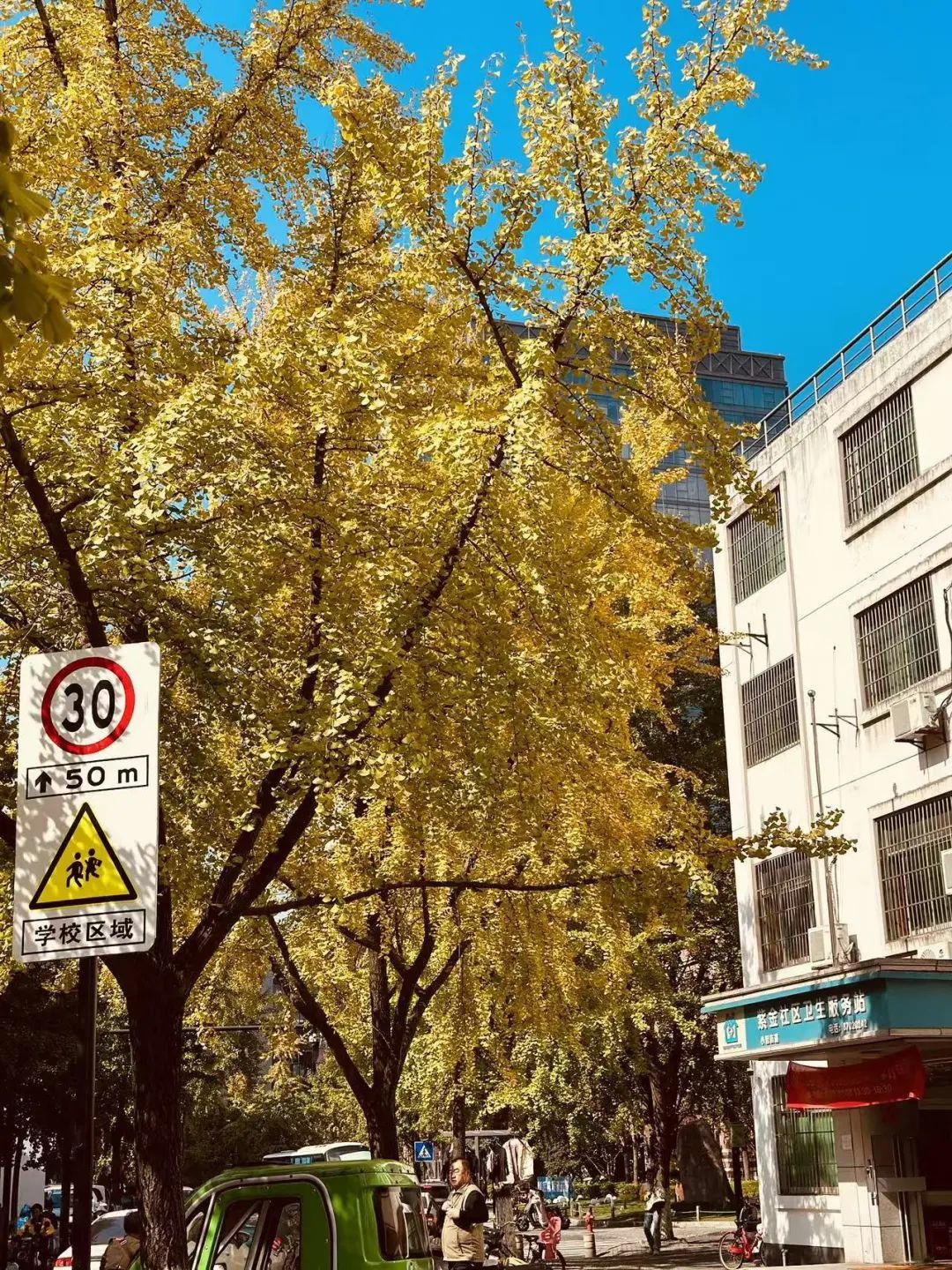 这片位于拱墅区上塘路朝晖公园南侧的银杏林,迎来了它一年中最绚烂的时刻。凭借其满目的金黄和幽静的环境,已成为杭州秋色叶的网红打卡点。