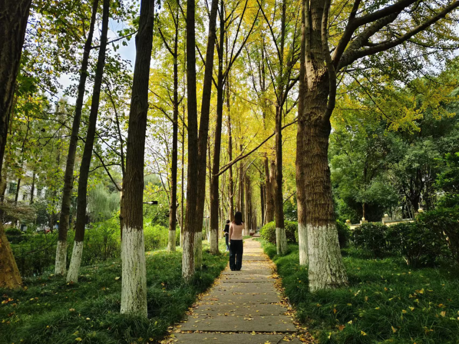 每当深秋时节,金黄的叶片挂满枝头,铺满大地,为这座城市增添了一抹醉人的秋色。