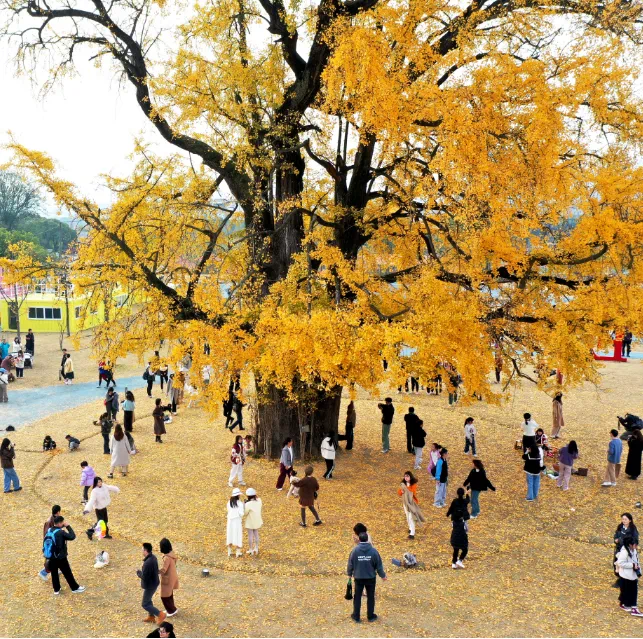 每当此时,银杏树下便会“长”出许多人,十里八乡群众纷纷前来树下许愿,以求诸事顺遂、幸福安康;摄影师们的长枪短炮总会不约而同聚集于此,将一年中最美的一帧定格。