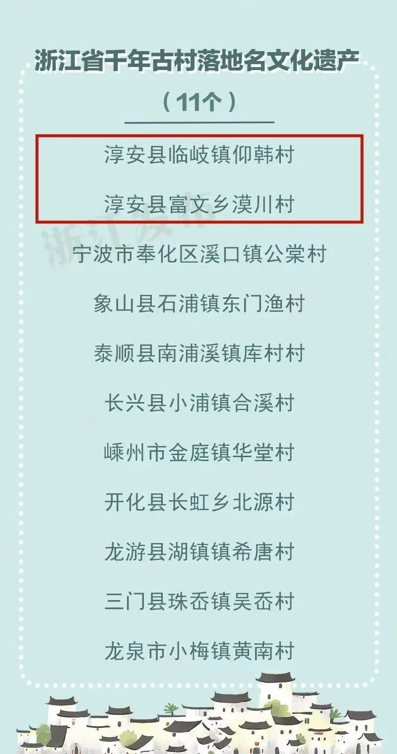 日前,浙江省民政厅、住房和城乡建设厅、文化广电和旅游厅、文物局公布了第三批“浙江省千年古镇(古村落)地名文化遗产”,我县临岐镇仰韩村、富文乡漠川村依托深厚的历史文化底蕴和悠久的村落建村历史,获评第三批“浙江省千年古村落地名文化遗产”。
