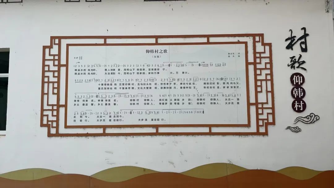 仰韩村建村始祖是童文起公,初为新水令,再授新安郡守。东晋咸康乙未三月(公元335年),童文起公徙居茂桐山下建村,定村名为“仰韩”,为“仰望古韩”之意,以先人世食韩(战国七雄之一的韩国)禄,示不忘本之意。建村伊始,迄今1689年。