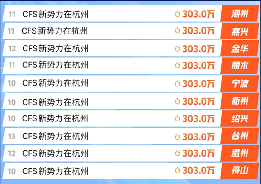 拱墅区文商旅集团与穿越火线赛事方的竭诚合作下,本届CFS世界总决赛结合杭州文化特色打造出了一场独特的电竞+文旅盛宴,受到了全国上下的广泛关注,赛事期间活动相关话题登上抖音、快手等多达15个热门话题榜单,浙江十城本地榜皆有上榜,吸引了全国各地的电竞爱好者来拱墅观赛,拉动了拱墅区的赛事经济发展。