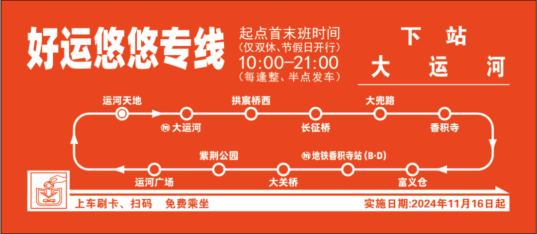 拱墅区推出好运悠悠专线巴士串联起大运河景区的各个景点和特色街区,周末和节假日可以免费乘坐游览大运河的多个景区,极大的方便了市民游客的出行。