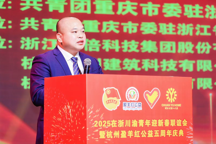 12月22日,由共青团重庆市委驻浙江省工作委员会、重庆市农民工办驻杭州办事处主办;重庆驻杭团工委、杭州盈羊红公益发展中心、川渝志愿服务总队承办的“2025年在浙川渝青年迎新春联谊会暨杭州盈羊红公益五周年庆典在萧山区隆重举行!