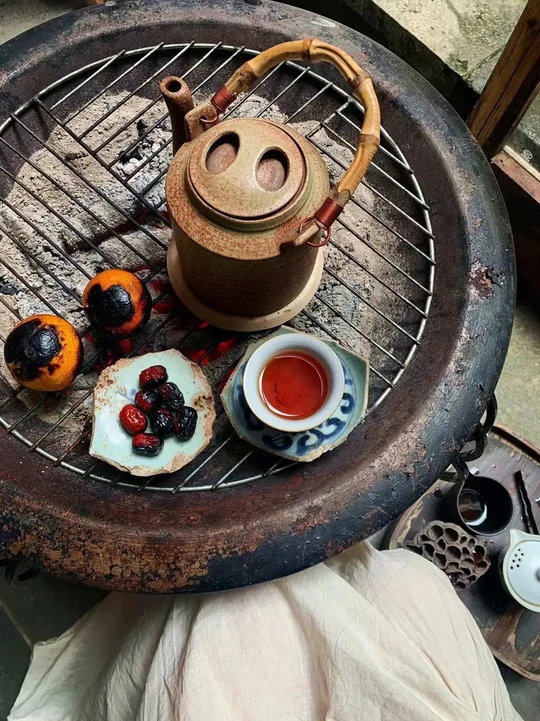 等待茶汤在陶壶中逐渐升温直至沸腾后